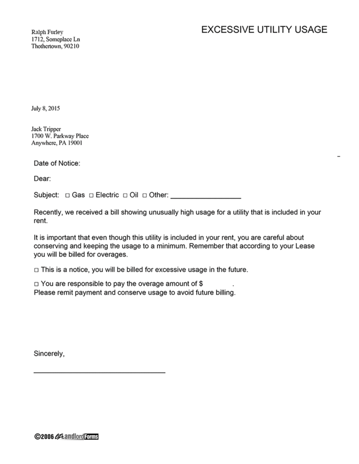 Excessive Utility Usage Notice Bill Ezlandlordforms